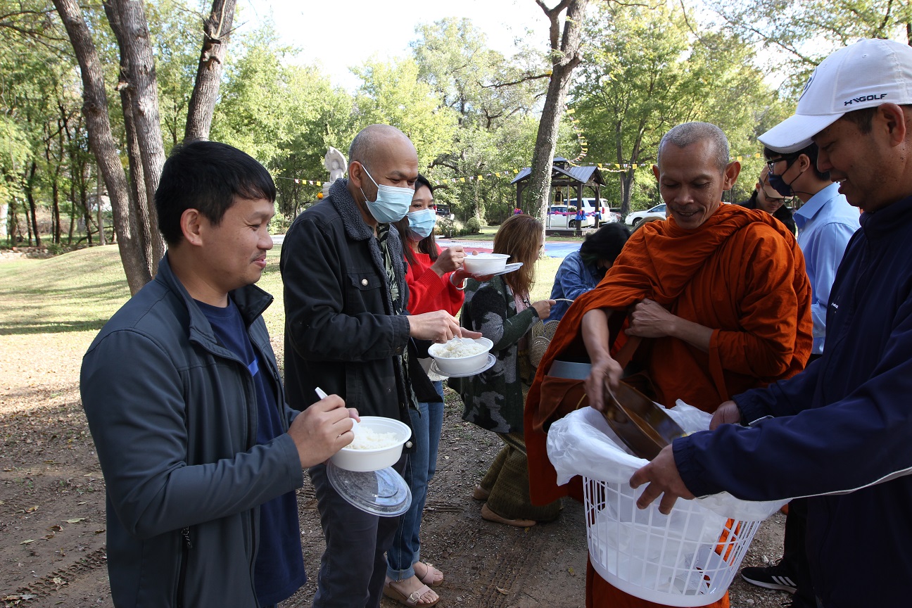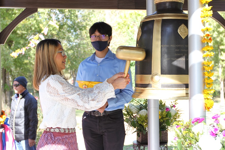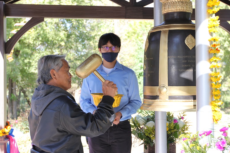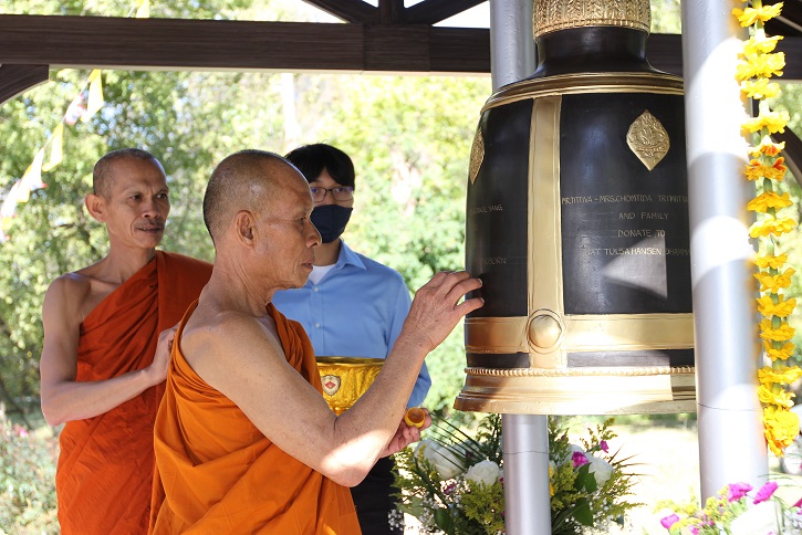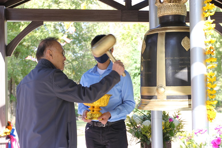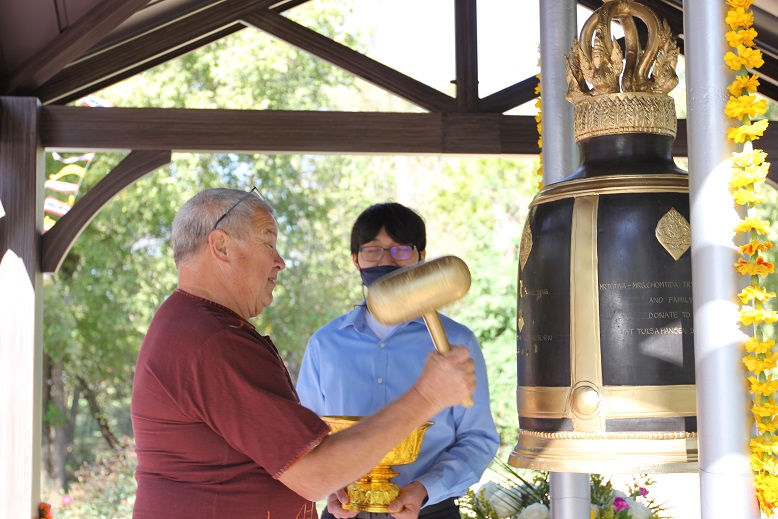 On the occasion of the Buddhist Lent Day of the year 2021, the Tulsa Hansen Dhamma Nusorn Temple is affiliated with nearby Buddhists. Jointly organized a merit-making event and offering the bell tower on October 31, 2021. At the event, there were Buddhist prayers, receiving blessings and offering food to monks. After that, there was a sermon performance and the offering donation to the temple. In the afternoon, there is a ceremony of the new bell tower. In this regard, the host of the Tulsa Hansen Dhamma Nusorn would like to thanks to the Sangkharatanaram temple from Oklahoma City and all those who attended this event.