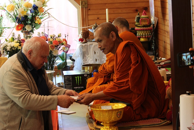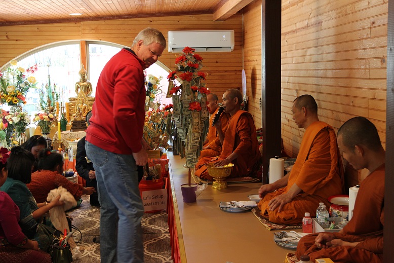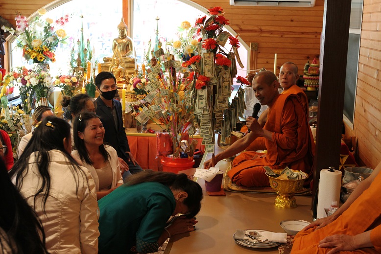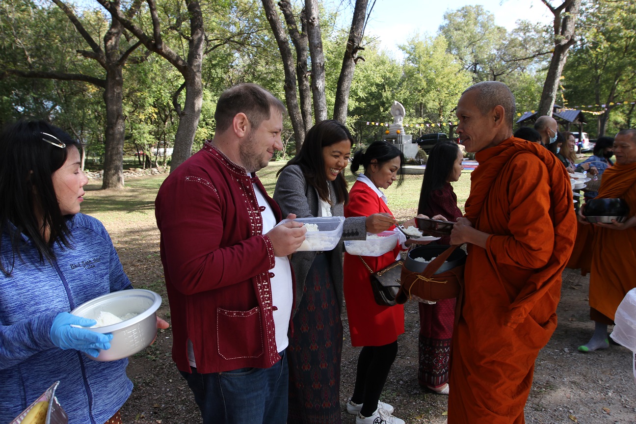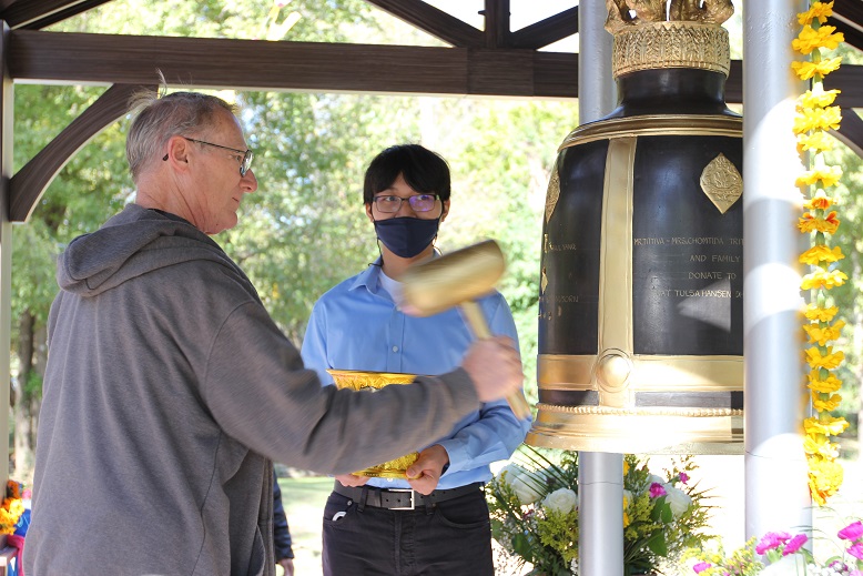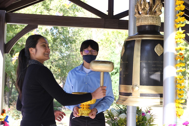 On the occasion of the Buddhist Lent Day of the year 2021, the Tulsa Hansen Dhamma Nusorn Temple is affiliated with nearby Buddhists. Jointly organized a merit-making event and offering the bell tower on October 31, 2021. At the event, there were Buddhist prayers, receiving blessings and offering food to monks. After that, there was a sermon performance and the offering donation to the temple. In the afternoon, there is a ceremony of the new bell tower. In this regard, the host of the Tulsa Hansen Dhamma Nusorn would like to thanks to the Sangkharatanaram temple from Oklahoma City and all those who attended this event.