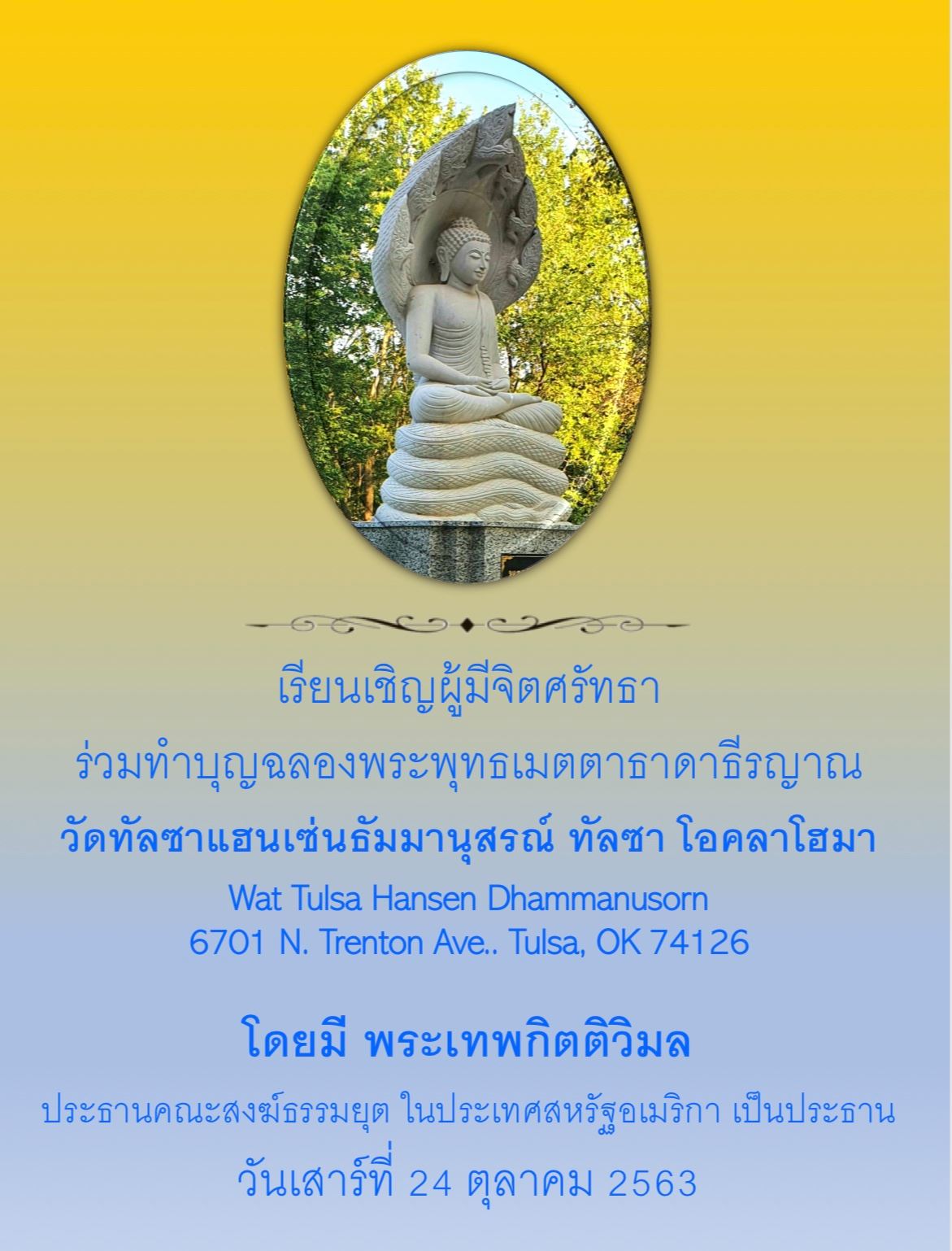 on Ssaturday Oct 24, 2020 at Wat Tulsa Hansen Dhammanusorn